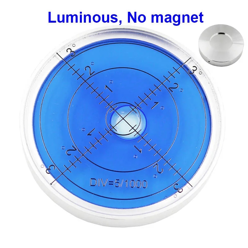 Luminous Universal Round Metal Spirit Level Bubble Bead Horizontal Tool Dia 60*10mm Magnetic Available