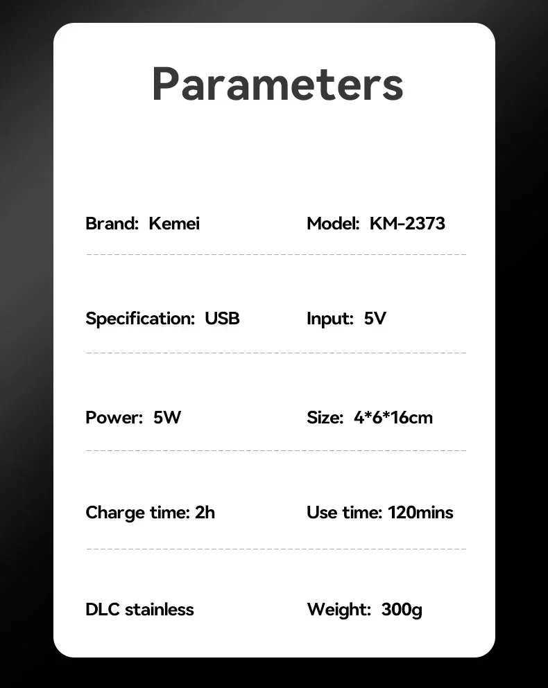 Upgrade your grooming kit with the Kemei KM-2373 Hair Clipper β€” designed for men who demand power, precision, and performance.