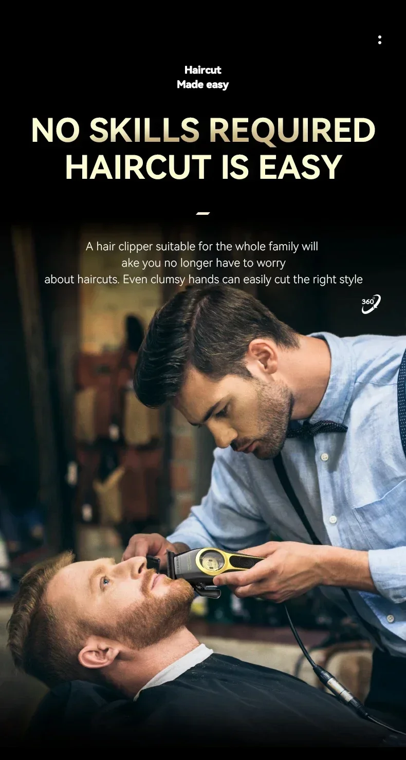 Featuring a cordless design with charging base, sharp stainless steel blades, and ergonomic grip, it’s perfect for barbers and home users alike. Achieve salon-quality results with less effort β€” ideal for fade cuts, beard trimming, and detailed styling.
