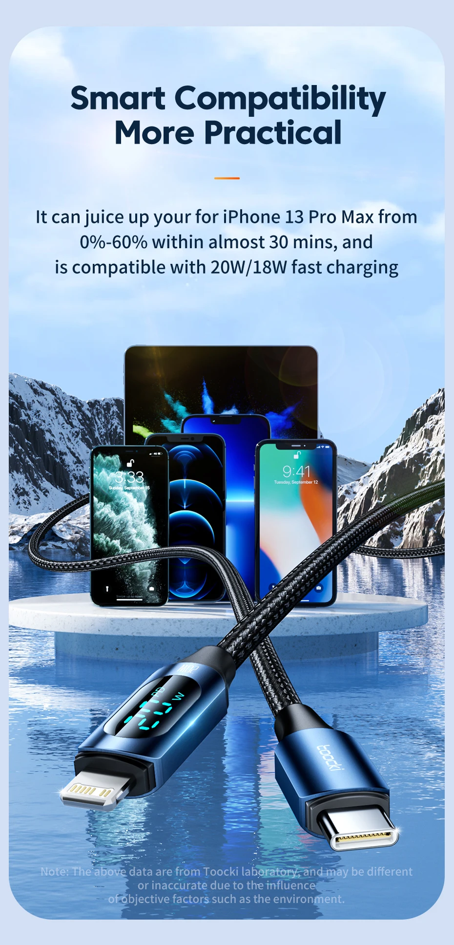 Toocki PD 20W USB-C to Lightning Fast Charger Cable for iPhone