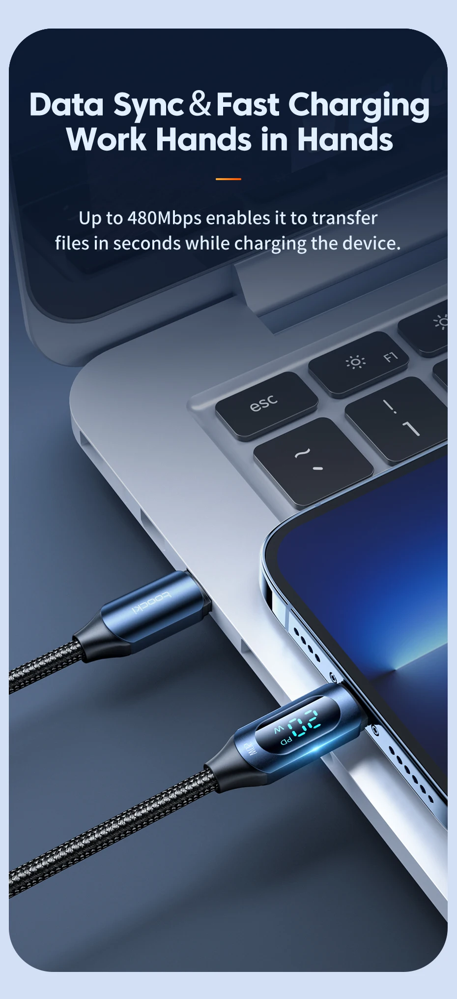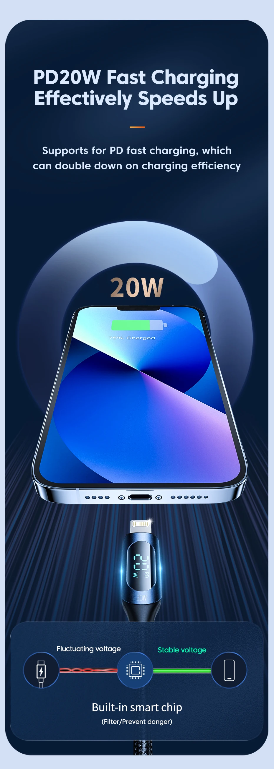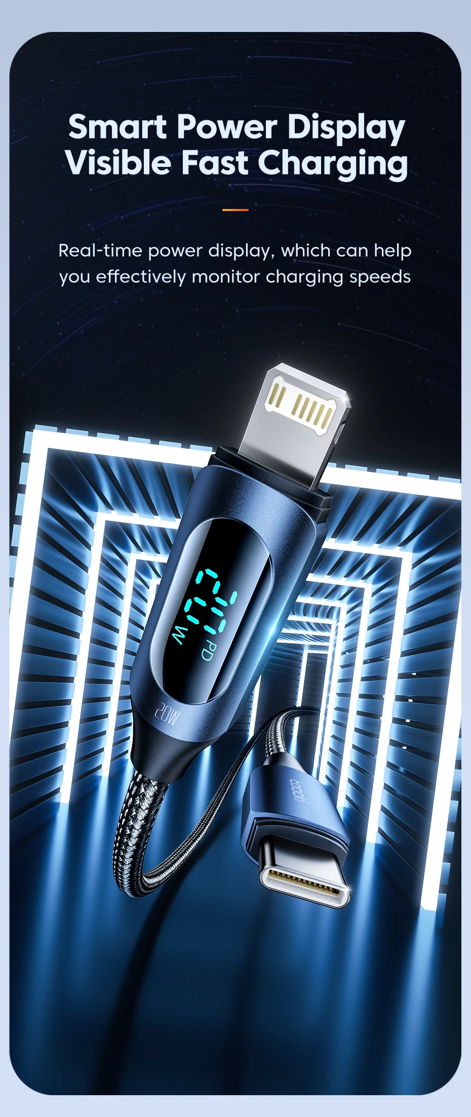 Built with a durable nylon braided design and smart digital display, it shows real-time charging speed so you can monitor your power output anytime. Perfect for home, office, or travel use.